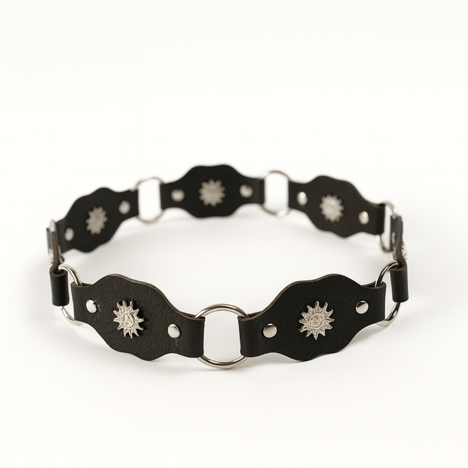 Este cinturón a la cadera destaca por sus piezas de cuero, cada una adornada con detalles de estilo rockero, que le dan un toque audaz y único. Las piezas metálicas que las unen, junto con la faja ajustable, no solo aportan estilo, sino también funcionalidad y comodidad.